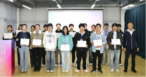 张昕楠现场宣布本次大赛的最终成绩,与会嘉宾为获奖团队代表颁发证书并合影留念。
