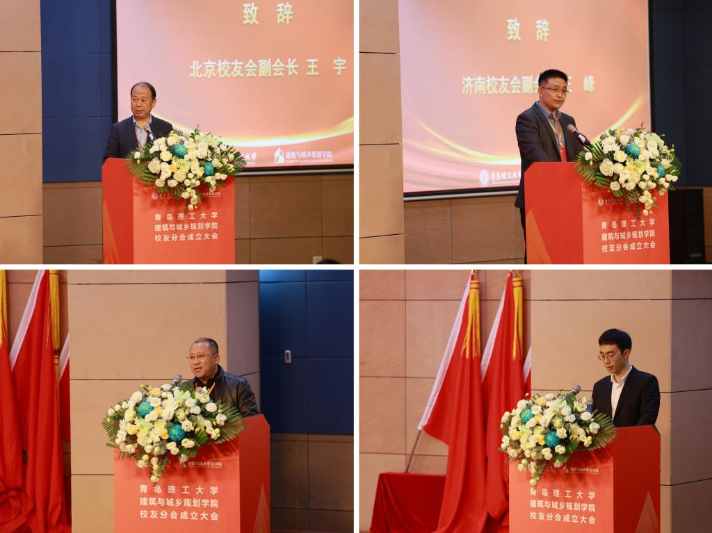 北京校友会副会长王宇、济南校友会副会长王峰、青岛校友会常务副会长于波分别代表北京校友会、济南校友会、青岛校友会致贺词,向建筑与城乡规划学院校友分会的成立致以真挚的祝福。与会人员共同观看了校友代表上海经纬董事、副院长、上海校友会会长、建筑学88级校友魏轶侃,中国建筑大师(风景园林)、建筑学94级校友吴宜夏、日本工程院外籍院士、建筑学94级校友赵城琦录制的祝福短片,现场温情满满,洋溢着浓厚温馨的校友情谊。