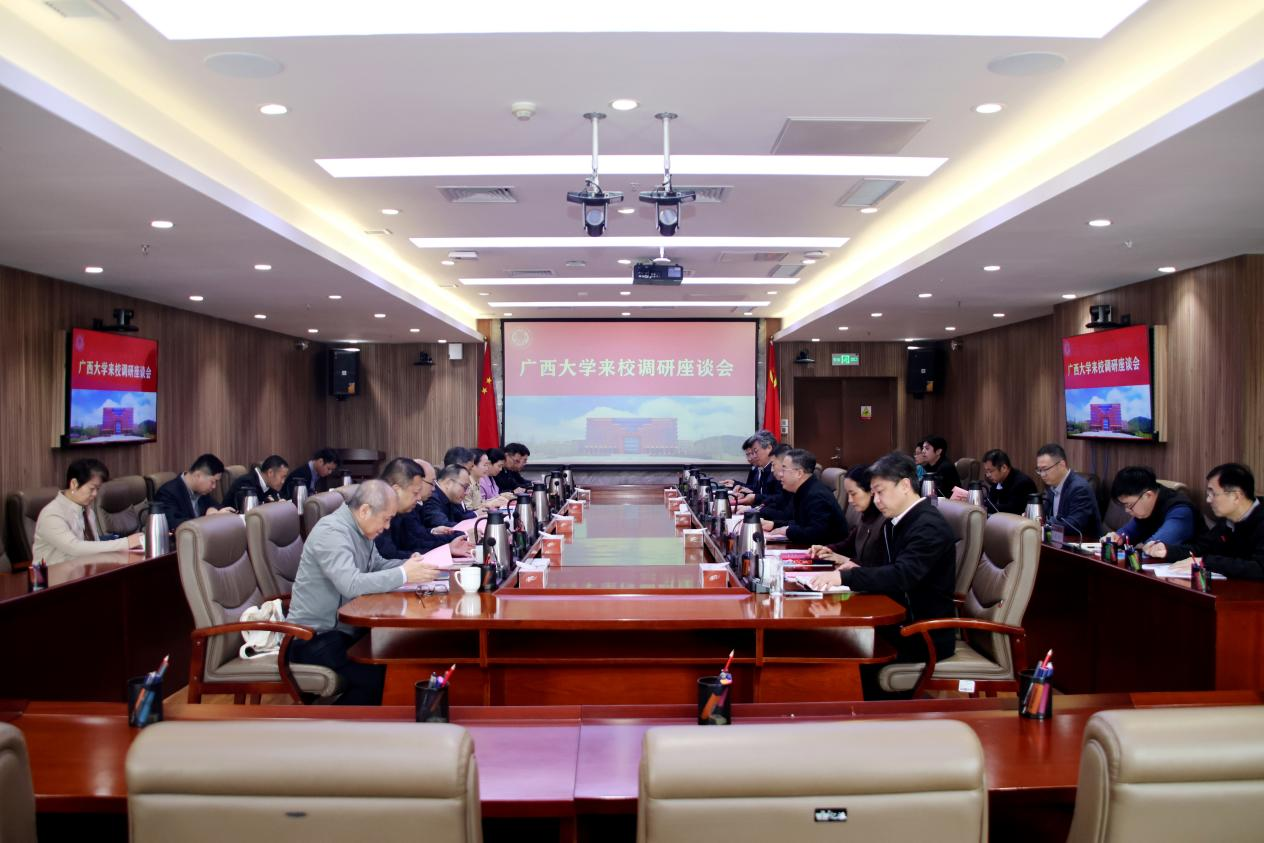 4月2日上午,广西大学党委副书记、校长肖建庄一行来校调研交流。党委书记杨赟出席座谈会并致欢迎词,副校长金祖权,党委常委、副校长苗吉军参加相关调研活动。座谈会由党委常委、副校长陈连军主持。