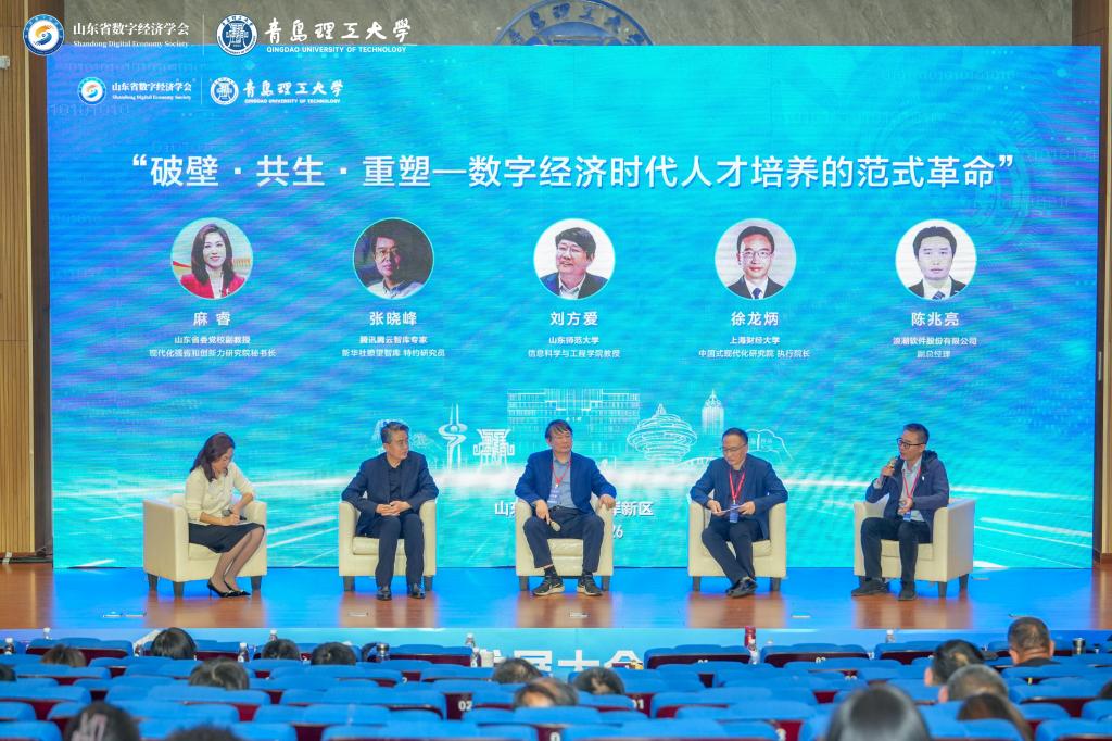 圆桌论坛以“破壁·共生·重塑——数字经济时代人才培养的范式革命”为主题,山东省委党校麻睿教授、张晓峰研究员、徐龙炳教授、山东师范大学刘方爱教授、浪潮软件副总经理陈兆亮等五位专家,围绕教育、科技与人才协同发展、学科建设与人才培养模式创新展开深入对话。