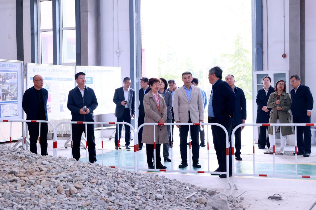 栾新一行实地调研了校史馆,土木工程学院岩土与轨道交通综合实验中心、防灾减灾综合实验中心,机械与汽车工程学院空间碎片监测与低轨卫星组网实验室等地,就科技成果落地应用、服务地方发展、大型实验平台建设与应用等方面展开交流。