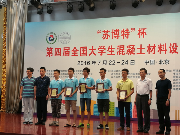 7月22日-24日,“苏博特”杯第四届全国大学生混凝土材料设计大赛在北京建筑大学大兴校区举行,我校土木工程学院派出的两支参赛队在比赛中表现出色,分获一等奖和二等奖。