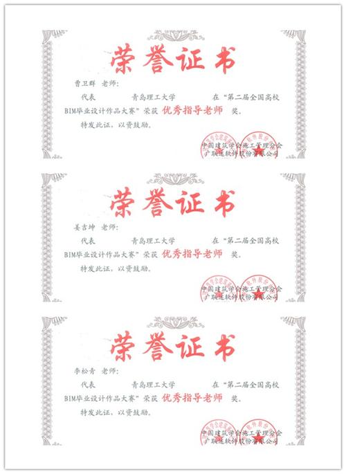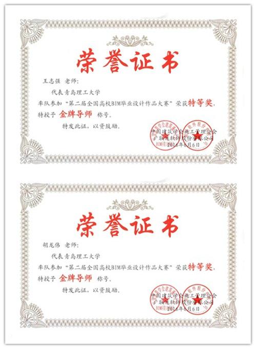 近日,第二届全国高校BIM毕业设计大赛现场答辩与颁奖典礼在北京举行。管理学院由工程管理、国际工程项目管理、工程造价专业组建的三支参赛队伍分获国家特等奖、国家二等奖、国家三等奖,指导教师王志强和胡龙伟被评为金牌指导教师。