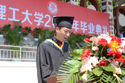 毕业生代表建筑学院建筑学专业11级3班毕业生徐钰茗、自动化工程学院电气工程及其自动化专业 12级4班毕业生李文雯、机电工程系机械设计制造及其自动化专业毕业生荆赫在发言表示,一定会铭记“百折不挠、刚毅厚重、勇承重载”的理工精神传统,不忘母校之恩,用自己的多年来积累的知识和技能服务社会,为母校的蓬勃发展奉献一份热情,为祖国的繁荣富强贡献一份力量。