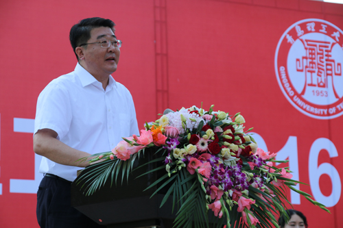 王亚军在讲话中代表学校全体教职员工,向圆满完成学业、即将背起行囊奔赴远方的毕业生同学们,致以最热烈的祝贺和最美好的祝愿;向所有为毕业生成长成才而默默耕耘、无私奉献的师长、亲人和朋友们,致以崇高的敬意和衷心的感谢。