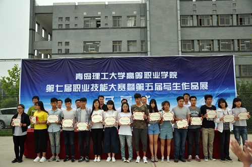 6月21日上午,高等职业学院第七届职业技能大赛暨第五届校外写生作品展开幕式在长江路校区篮球场举行。