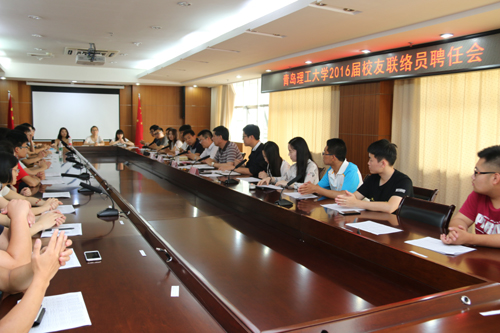 6月20日下午,学校在图书科技楼会议室召开2016届校友联络员聘任会,55名应届毕业生受聘为校友联络员。副校长、校友总会秘书长杨兴昌为获聘同学颁发聘书并讲话,党办校办副主任钱均宣读《青岛理工大学2015届校友联络员名单》,聘任会由校董校友办张国昌老师主持。