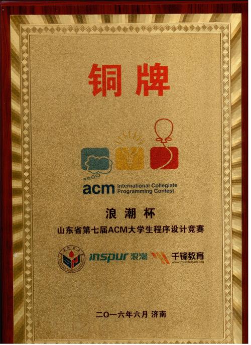 6月5日,“浪潮杯”山东省第七届ACM大学生程序设计竞赛在山东师范大学成功举行。来自省内外31所高校的164支队伍参赛,我校参赛队伍获省二等奖一项、三等奖三项。