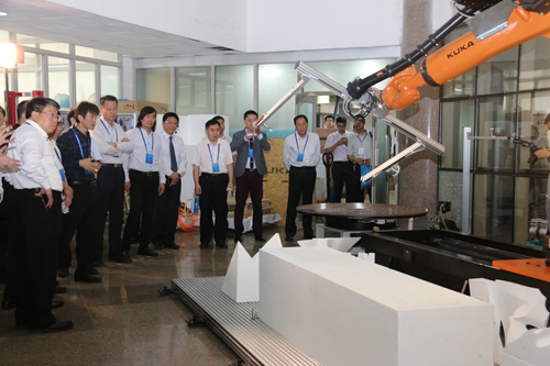 见面会后,专家组一行参观了校区沙盘,实地考察了结构实验室、建筑馆展厅、综合营造实验室、数字建构实验室、建筑物理实验室等。