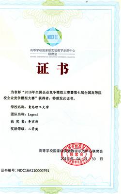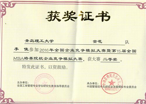 我校学子在全国企业竞争模拟大赛中获二等奖