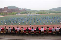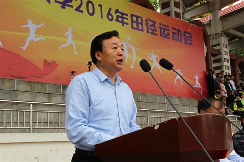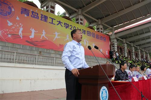 5月27日至28日,我校2016年黄岛校区田径运动会在我校嘉陵江路校区田径场举行,校领导及各职能部门、各学院负责人出席开幕式和闭幕式,黄岛校区全体学生和部分教职工代表参加运动会。校党委副书记杨向荣宣布运动会开幕,副校长李东致开幕辞,副校长张伟星致闭幕辞,体育教学部主任沙洪成主持运动会。