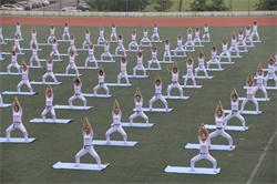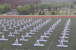 杨向荣宣布运动会开幕后,运动员代表李雪丽和裁判员代表代滨依次宣誓,表演项目开始。其中教工第九套广播体操会操表演和大型瑜伽“靓丽青春”表演十分新颖,别具亮点,展现了我校教职工和学生热爱体育运动、蓬勃向上的激情与活力。表演项目结束后,沙洪成宣布竞赛开始。