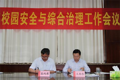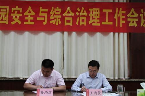 5月25日下午,临沂校区2016年校园安全稳定和综合治理工作会议在办公楼二楼会议室召开。学校副校长李国华讲话,校区党委副书记王西长主持会议并传达学校2016年校园安全稳定和综合治理工作会议精神,同时,受李国华同志委托同各部门、系(部)负责人,各党总支书记、直属党支部书记签订消防安全承诺责任书。