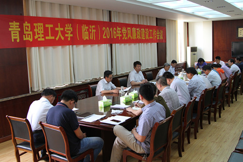 王西长宣读《青岛理工大学(临沂)党风廉政建设责任制实施办法》,要求各级党组织和各部门、系(部)进一步强化责任意识,切实履职尽责;增强纪律和规矩意识,严格依规依法办事;做好廉政风险排查防控工作,从源头上预防和治理腐败;强化责任担当,做师生信赖的好干部。(临沂校区办公室)