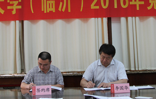 5月25日下午,临沂校区2016年党风廉政建设工作会议在办公楼二楼会议室召开。学校副校长李国华代表校区党委、行政就加强校区党风廉政建设工作发表讲话,并与各党总支书记、直属党支部书记和各部门、系(部)负责人签订党风廉政建设责任书。校区党委副书记王西长主持会议。