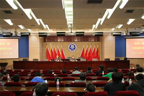 为进一步深化师生党员对“两学一做”学习教育的认识, 4月27日下午,我校邀请省委讲师团副团长何克亮教授在学术报告厅作专题辅导报告。报告会由校党委副书记杨向荣主持。各总支书记、市北校区科级以上干部、全体学生工作干部、研究生学生党支部书记参加了报告会。