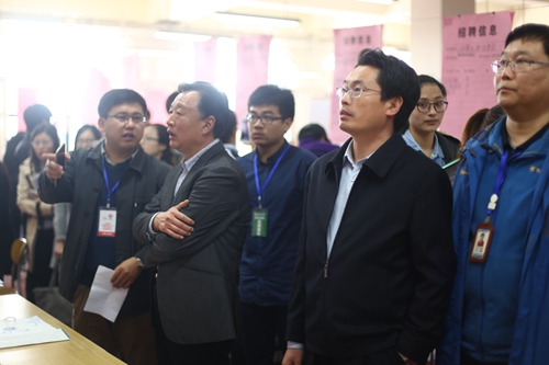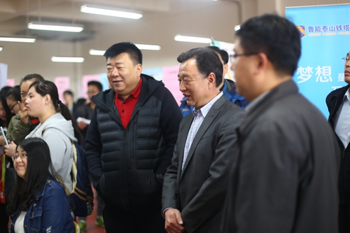 招聘会期间,校长王亚军、副校长李东及校办、校区办、招就办负责人等亲临招聘会现场,亲切问候各校友单位,感谢校友们积极响应母校号召,助力母校毕业生就业工作。王亚军校长、李东副校长与校友企业代表就学校人才培养、就业工作进行了亲切交谈。