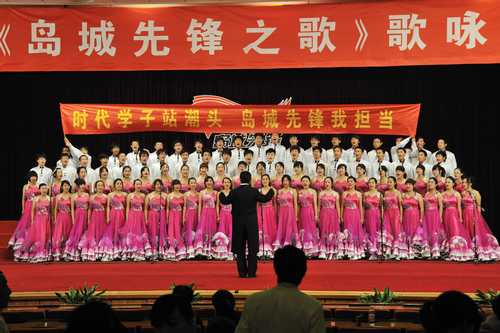校党委充分认识到《岛城先锋之歌》歌咏比赛的重大意义,要求认真对待、精心组织、悉心准备、着力落实,通过鼓励与发动师生积极参与,让广大党员深刻领会《岛城先锋之歌》体现出的新时期党组织和党员要始终走在时代前列、争当先锋、永葆先进性的要求,教育激励广大党员牢记宗旨,干事创业,争当兴校强校先锋。校创先争优、争做兴校强校先锋活动领导小组办公室为此召开会议,安排部署相关工作,在全校开展学唱《岛城先锋之歌》的基础上,由工会、团委组织落实,在土木工程学院、艺术学院和相关部门的配合下,组建了以教工党员和学生党员为骨干的教工合唱团和学生合唱团。师生克服种种困难,在忙碌的教学、科研、管理工作及日常学习、生活之余,利用业余时间和公休日加班加点进行刻苦排练,在较短时间内完成了“岛城先锋之歌”的排练工作,并于12月4日在市级机关会议中心三楼会堂参加比赛。比赛中,我校合唱团以激情高涨的精神风貌、整齐划一的队形、高昂嘹亮的歌声,唱出了青岛理工大学的先锋意识,唱出了风貌,唱出了水平,赢得了观众和评委的一致好评。