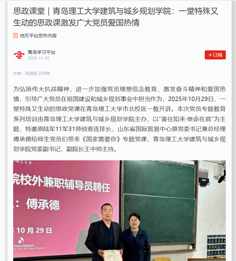 【学习强国】思政课堂|青岛理工大学建筑与城乡规划学院:一堂特殊又生动的思政课激发广大党员爱国热情