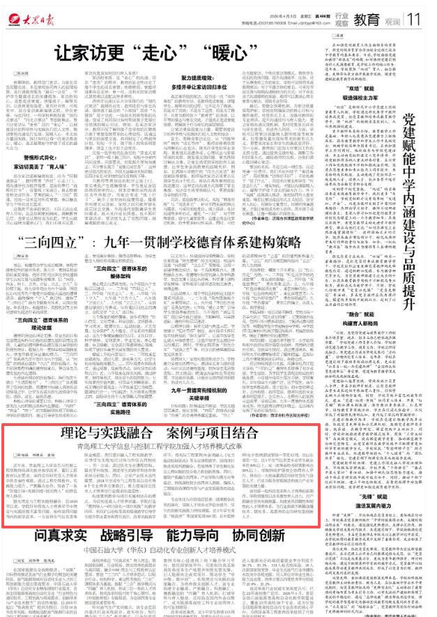 近年来,青岛理工大学信息与控制工程学院持续深化教育教学改革,紧盯工程教育认证要求,面向应用研究型人才培养中的普遍性难题,通过工程伦理教育、实践能力提升、产教融合协作,探索了一条“价值引导+实践训练+协同育人”的特色育人路径。