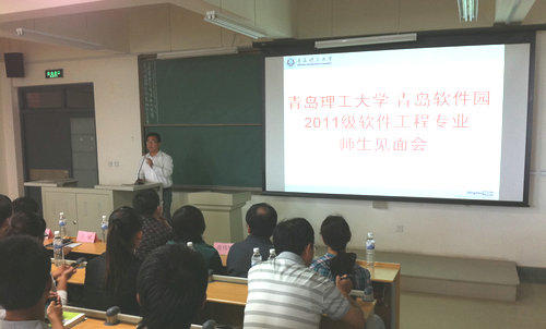 青岛软件园人力资源服务有限公司董事长刘全首先代表青岛软件园对同学们顺利考入青岛理工大学表示祝贺,刘全董事长从软件程合办专业设立的初衷、培养模式、培养目标等多个方面向大家做了具体介绍,并结合软件工程专业的专业特点和目前IT企业的用人标准、行业的发展趋势,阐述了软件工程专业的美好前景。