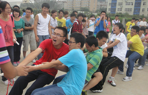 9月19日下午4点,由自动化工程学院学生会体育部举办的新生拔河比赛在三教篮球场正式开始。学院2011级所有班级均派出队伍参加了比赛。