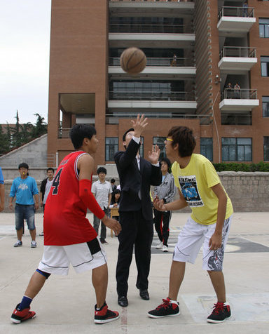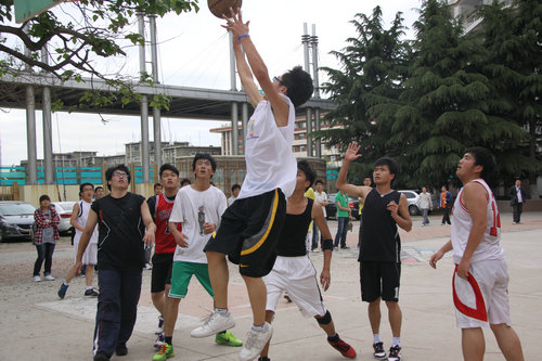 5月26日中午,建筑学院2011篮球对抗赛在南院篮球场开赛,建筑学院党总支副书记侯方高、辅导员高江、曹伟现场观看比赛并为运动员加油鼓劲。