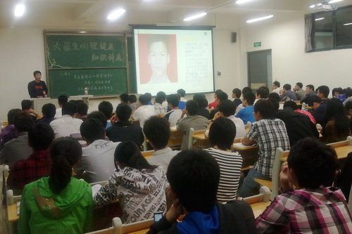 5月26日晚,绿丝带健心协会在新校区邀请心理健康教育中心刘安庆老师为同学们讲解心理健康方面的知识。