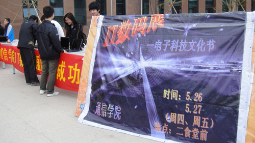 5月26日中午,作为第六届电子科技文化节的组成部分之一,由通信学院组织的电子数码展新校区主教学楼门口举办。