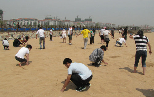 5月15日上午,管理学院社团联合会举办的第二届“沙滩赛赛赛”活动在黄岛金沙滩举行。