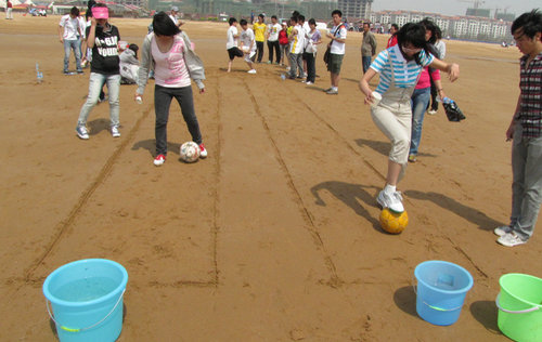 此次比赛分为团体赛和个人赛两个环节。第一环节中,所有参赛选手分为红蓝两队,每支队伍再分成四个小分队进行各项比赛。角斗士、趣味拔河、沙地穿越、智力大比拼等一系列有趣的项目激发了同学们的热情。第二环节个人赛,同学们满怀激情,踊跃报名。重温小时候玩的跳房子游戏,让大家别有一番感动。沙滩寻宝环节更加精彩。比赛最后,为获奖者颁发奖品,大家鼓掌欢呼,同学们收获的不仅仅是奖品,还有那份快乐。
