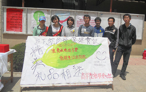 5月12日上午,商学院社联爱心社在长江路校区二食堂门口举办了主题为“浪费水电我不要,低碳生活我拥抱”的校园环保活动。