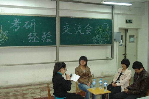 为解决广大学生对考研知识的困惑,激发考研的热情与信心。经贸学院学生会学习部于4月21日晚在2教阶201举办考研经验交流会。本次交流会邀请07级经贸张建(考研成绩424分,考取大连海事大学)、07统计李盼(考研成绩422分,考取南开大学)、07经济赵成建(考研成绩384分,考取浙江工商大学)为在场同学解疑答惑。