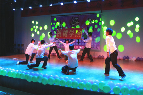 晚会开始,主持人首先表达了对学校的美好祝愿,接着黑小丑乐队以一首动感十足的歌曲拉开了晚会的序幕。民族特色的新疆舞蹈带领我们走进了一望无际的草原;而来自兄弟院校的同学充满激情的舞步把观众带进了奇妙的世界;机械学院七人组用幽默诙谐的方式诠释的舞蹈,引爆了全场观众的热情。