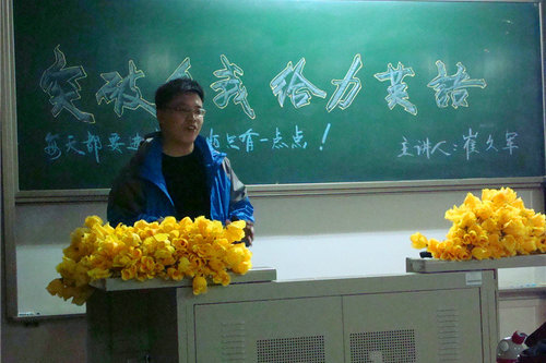 4月19日晚7点,管理学院学生会举办以“突破自我,给力英语”为主题的英语学习讲座,主讲人为外国语学院崔久军老师。