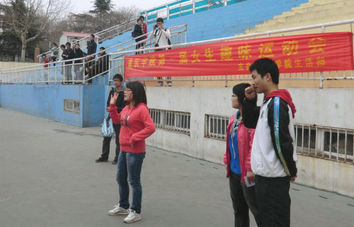 4月10日下午2点,建筑学院第一届女生趣味运动会在学校南院足球场举行,辅导员钟京凤老师致开幕词。