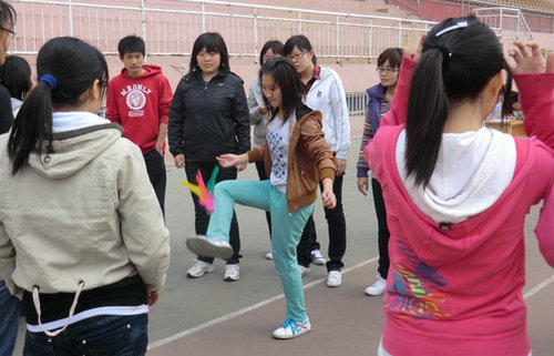 钟老师向同学们简述了比赛要求并提出了自己的希望:友谊第一,比赛第二;安全第一,活动第二。随后,学生会生活部部长对本次比赛的流程和规则做了大体介绍。本次比赛共分为:跳绳、袋鼠跳、踢球射门、踢毽子和两人三腿五个项目。要求每队要参加所有项目,以完成规定项目时间长短计比赛成绩。