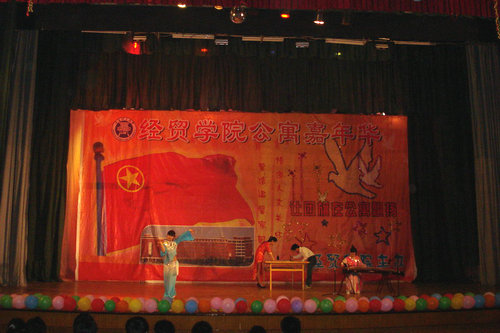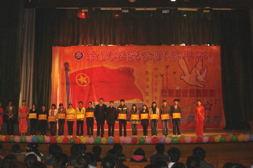王振老师宣读特色宿舍舍长及特色宿舍获奖名单后,彭书记、焦红良副书记等为获奖集体及个人颁奖。颁奖完毕,精彩的节目依次上演。歌曲《候鸟》、《向天再借五百年》、《我的心好冷》、《暗香》展示了同学们优秀的歌唱水平,博得观众的阵阵掌声;小品《推销》、相声《吃虾仁》、《瞧着俩爹》显示出同学们高超的幽默水平,现场叫好声一片;由经贸学院学生会表演的《大学那些事》用话剧的形式阐释了同学们对大学的深刻理解,各部成员的精彩表演更是将晚会推向了高潮;器乐独奏、朗诵、手语则展现出同学们的多才多艺。