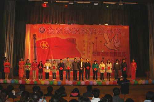 3月31日晚7点,经贸学院在科学会堂举办公寓嘉年华闭幕晚会暨颁奖仪式。经贸学院党总支书记彭介寿、校团委副书记焦红良、经贸学院团总支书记王振、学生处公寓管理中心毕记满、经贸学院党总支孟明出席本次晚会。