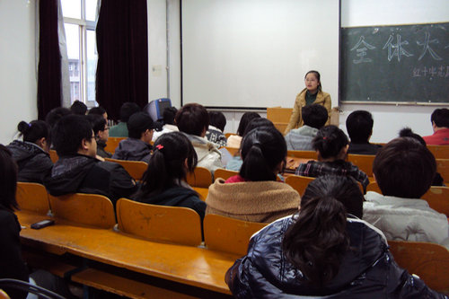 大会上,红十字志愿服务团团长对上学期工作做了简要总结,并宣布服务团被评为我校志愿服务类社团的“领头羊”,肯定了各部门的工作。接着,各部的代表依次上台发言。虽然都是新人,但他们的自信,对自己部门活动的深刻剖析,对新学期工作的热切期待深深打动了在场的每一个人。