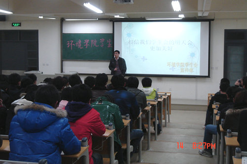 首先,路老师对学生会上学期工作取得的优异成绩给予了肯定和表扬。指出学生会积极组织各种活动,丰富多彩。在日常管理类活动方面,学生会组织了三自教育、早操、晚自习等,为学院的日常管理提供了保障。在课外活动和文艺活动方面,组织了新生才艺大赛、萍水“乡”逢、“理工五味评”摄影大赛等活动丰富了新校区的枯燥生活,让同学们的生活充实。此外,学院在新校区宣传工作方面也取得了喜人的成绩。共在理工新闻网上发表新闻稿26篇,其中题为“环境学院2010级新生管理工作规范化取得良好效果”的新闻稿在校园网主页发表,为学院做了很好的宣传。同时,路老师也指出了上学期学生会中存在的问题,希望学生会全体成员能在本学期的工作中弥补不足。接下来,路老师提出了学生会本学期的工作目标和活动主题。并提出强化学生会内部建设,建立量化考核制度,为干事提供公平的环境;继续完善签到制度,合理安排活动时间,力争使活动流程规范化,为活动的顺利举行提供保障。