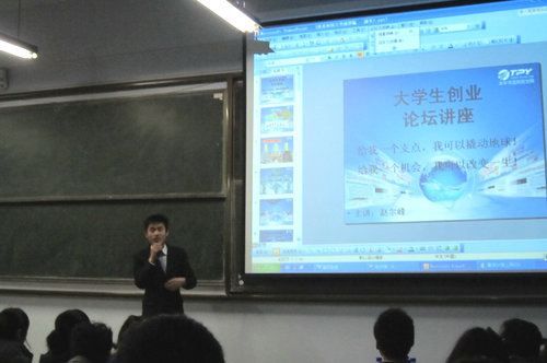 3月16日晚7点,由艺术学院主办,太平洋直购官方网赵尔峰先生主讲的大学生创业论坛讲座在四方校区1教202阶成功举行。