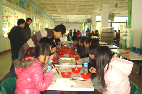 活动开始前,主持人介绍了本次比赛的活动规则和评分标准:比赛分为三个环节分别是包、煮、吃,包饺子限时30分钟。评委根据煮熟后饺子的味道,外形和完整度来打分。工作人员向各队分发完材料后,包饺子大赛正式开始。各参赛队员熟练的揉面、擀皮、调馅、包饺子,参赛队员分工明确,配合默契。党总支副书记王粲,团总支书记王振,辅导员孟明也加入到活动中,与同学们一同包饺子,共享其中的乐趣,气氛十分活跃。饺子煮熟后,评委依次对各个参赛队包的饺子进行品尝,公正的打分。打分结束后,孟明老师与同学们一起品尝劳动成果。虽然有的水饺包的咸淡不均,但同学们都吃的津津有味。“吃自己包的水饺就是香”,一同学质朴的话道出了同学们的感受。经过激烈的比拼,最后经贸一班以其突出的表现夺得一等奖,另外还评出二等奖一名,三等奖二名,精神文明奖,团队协作奖各一名。