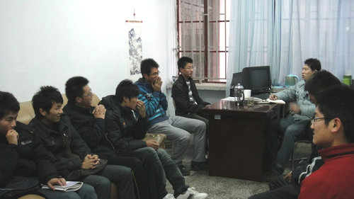 王老师首先让同学们分别讲述了自己当初的志愿报考情况以及学习近况,并对同学们提出的关于本专业学习方面的各种问题作了详细解答,同时也为同学们在以后的学习重点及学习方法等方面做了相关指导。另外,对于绝大多数同学关心的毕业后是否考研的问题,王老师指出,同学们应该大一时就明确目标,而不要等到大三甚至连临近毕业时再考虑将来的去向问题,以免到时措手不及。此外,王老师还让同学们分别介绍了自己的家庭情况,以对同学们的生活有更进一步的了解,有利于以后工作的开展。