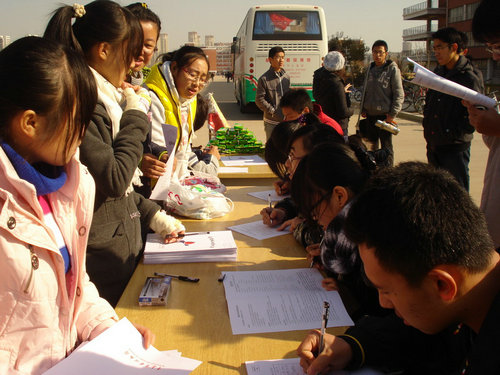 同学们积极报名,踊跃参与。在5个小时的时间里,献血人数高达125人,献血总量达到38330ml。在回答开发区电视台采访时,一位报名鲜血的同学这样说,“希望通过这次义务献血,为社会贡献自己的一份力量。”