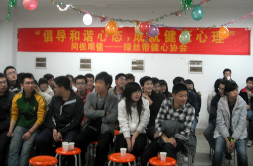 12月4日晚,绿丝带健心协会在3号实验楼411室举行“心方向·新旅程”协会成立五周年庆祝联谊活动。协会指导老师张继清、院各社团负责人、兄弟院系学生心理社团成员以及协会全体会员50余人参加了活动。