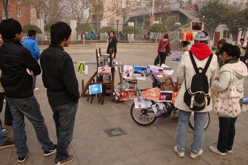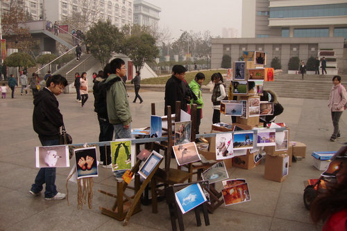 12月1日上午,由艺术学院举办的无限创意摄影展在四方校区科技图书广场开展。