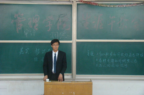 11月26日,管理学院在2教阶404举办了生涯午茶会,管理学院党总支副书记申维东老师、07级辅导员董兰国老师出席,学院2011届毕业生参加了讲座。管理学院2009届毕业生徐国栋和2010届毕业生杨洪芬作为主讲人。