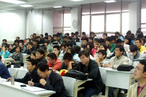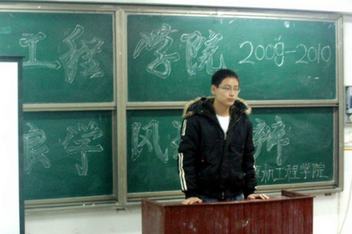 11月24日下午,计算机学院“2009-2010年度优良学风班答辩大会”在阶教104举行,计算机学院院长王斌,副院长姜梅,党总支副书记魏俊文,团总支书记曲良波及学院各教研室主任出席会议。计算机学院全体学生干部参加会议。