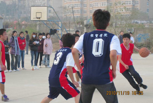 初冬的严寒抑制不了队员们内心的激情。比赛开始,队员们便迅速投入其中。经济队和统计队均派出最强阵容参加最后角逐,双方队员非常活跃,精准地抢断、漂亮的篮板球引起场上阵阵掌声。一次次精彩的投篮,引起场边的观众大声的喝彩。双方的拉拉队不顾寒冷,拼命地给队员们加油。两队的比分交替领先,焦灼不下。中场休息,场外的观众立即给队员送水,场面令人感动。下半场竞争更加激烈,队员们虽然已有些疲惫,但激情不减。经过了40分钟的激战,经济队凭借的自己的实力问鼎冠军。经贸和统计获得优胜奖。最佳拉拉队奖由经济班夺取。时节同学以其优秀表现获得MVP荣誉称号。
